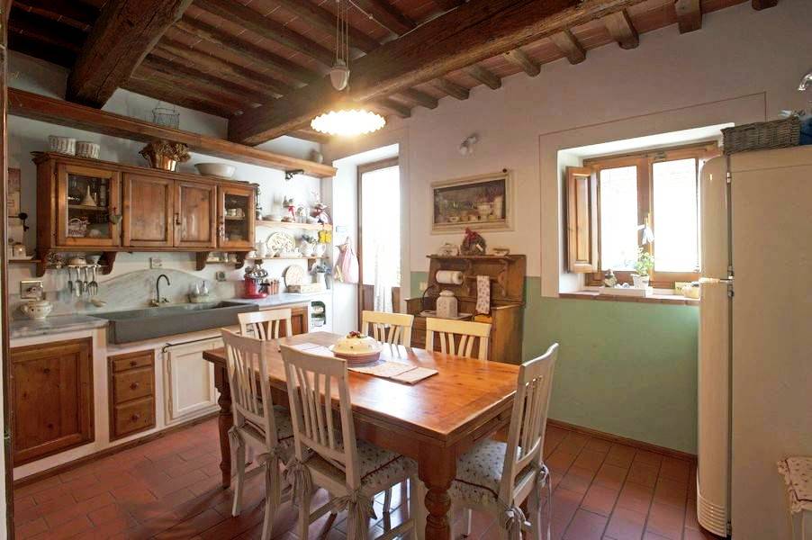 The property is elegantly refinished with walls partially in visible stone, antique rafters, floors in hand made terra cotta from Impruneta, hand made wrought iron railings and hand made doors.