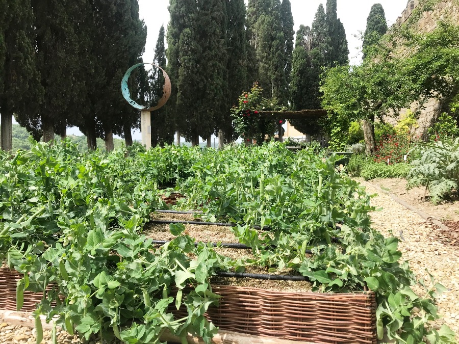 Here nature is literally exploding: fava beans, peas, salads, courgettes, herbs and medicinal plants.