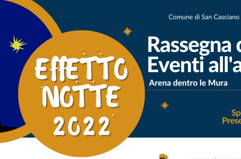 Under the stars opens its doors, in the arena within the walls of Piazza Samonà, the rich cultural container Effetto Notte, with a large screen and a fascinating stage in the historic heart of San Casciano.