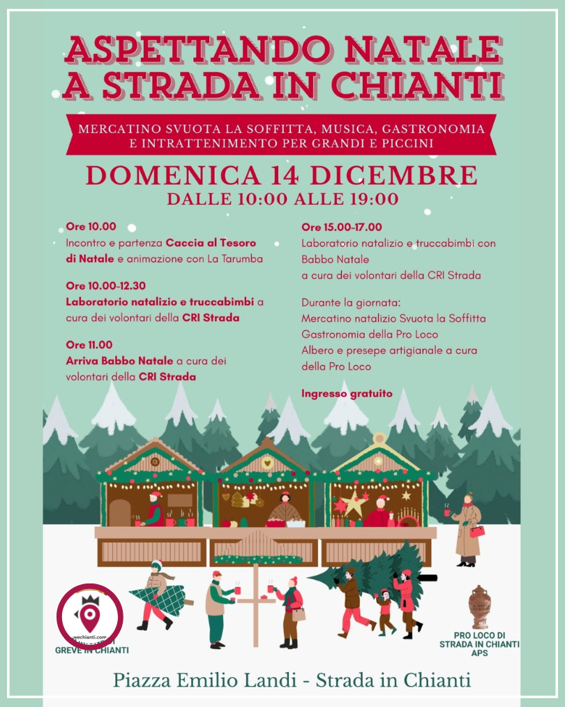 “Aspettando Natale a Strada in Chianti”: è il titolo della giornata, organizzata dalla Pro Loco di Strada in Chianti (con il patrocinio del Comune) per domenica 14 dicembre.