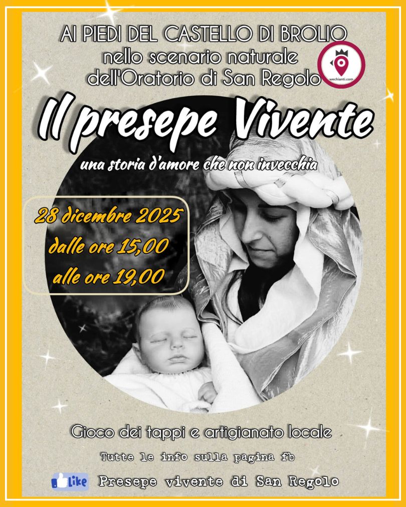 Grande attesa per l’edizione 2025 del Presepe Vivente di San Regolo, che come da tradizione si terrà ai piedi del Castello di Brolio, nello scenario naturale dell’Oratorio di San Regolo.