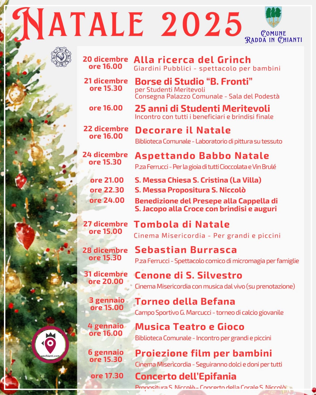 E’ quello degli eventi per le festività natalizie di Natale, Capodanno e inizio 2026, a Radda in Chianti: dal 20 dicembre al 6 gennaio.