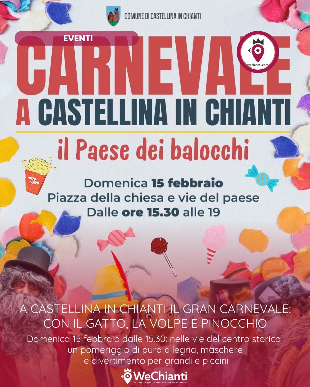 Tutti mascherati domenica 15 febbraio, dalle 15.30, nelle vie del centro storico di Castellina in Chianti!