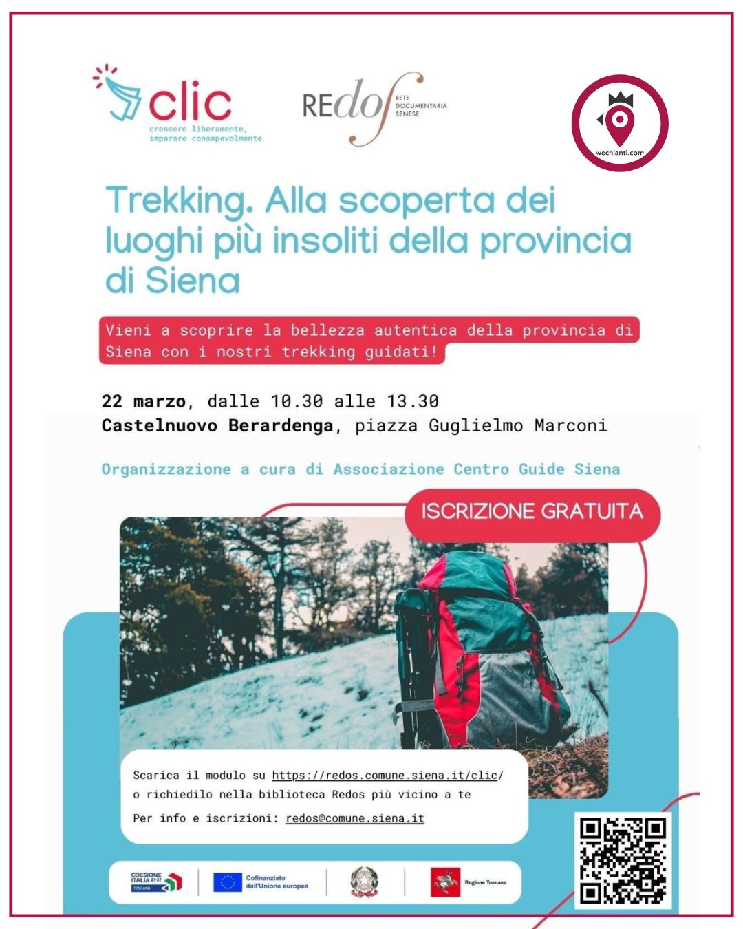 Domenica 22 marzo, dalle 10.30 alle 13.30, toccherà al territorio di Castelnuovo Berardenga: si tratta di un evento gratuitoRitrovo e incontro con la guida presso piazza Marconi.