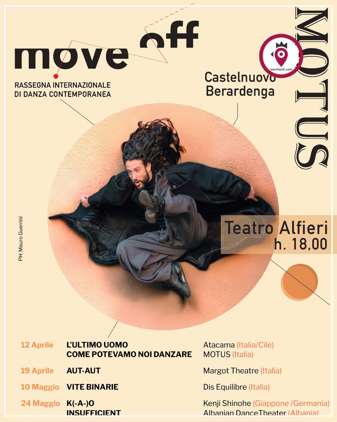 Dal 12 aprile al 24 maggio torna, al Teatro Comunale Vittorio Alfieri di Castelnuovo Berardenga, la Rassegna Internazionale di Danza Contemporanea “Move Off”, diretta dalla Compagnia MOTUS e organizzata in collaborazione con il Comune di Castelnuovo Berardenga.