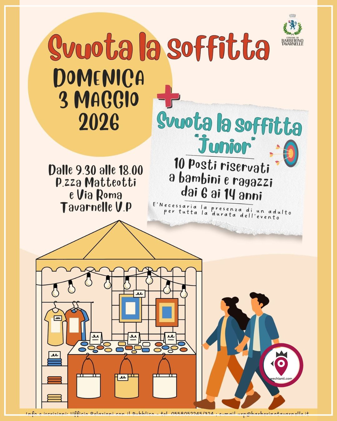 Domenica 3 maggio torna il mercatino del riuso Svuota la Soffitta, in piazza Matteotti a Tavarnelle.