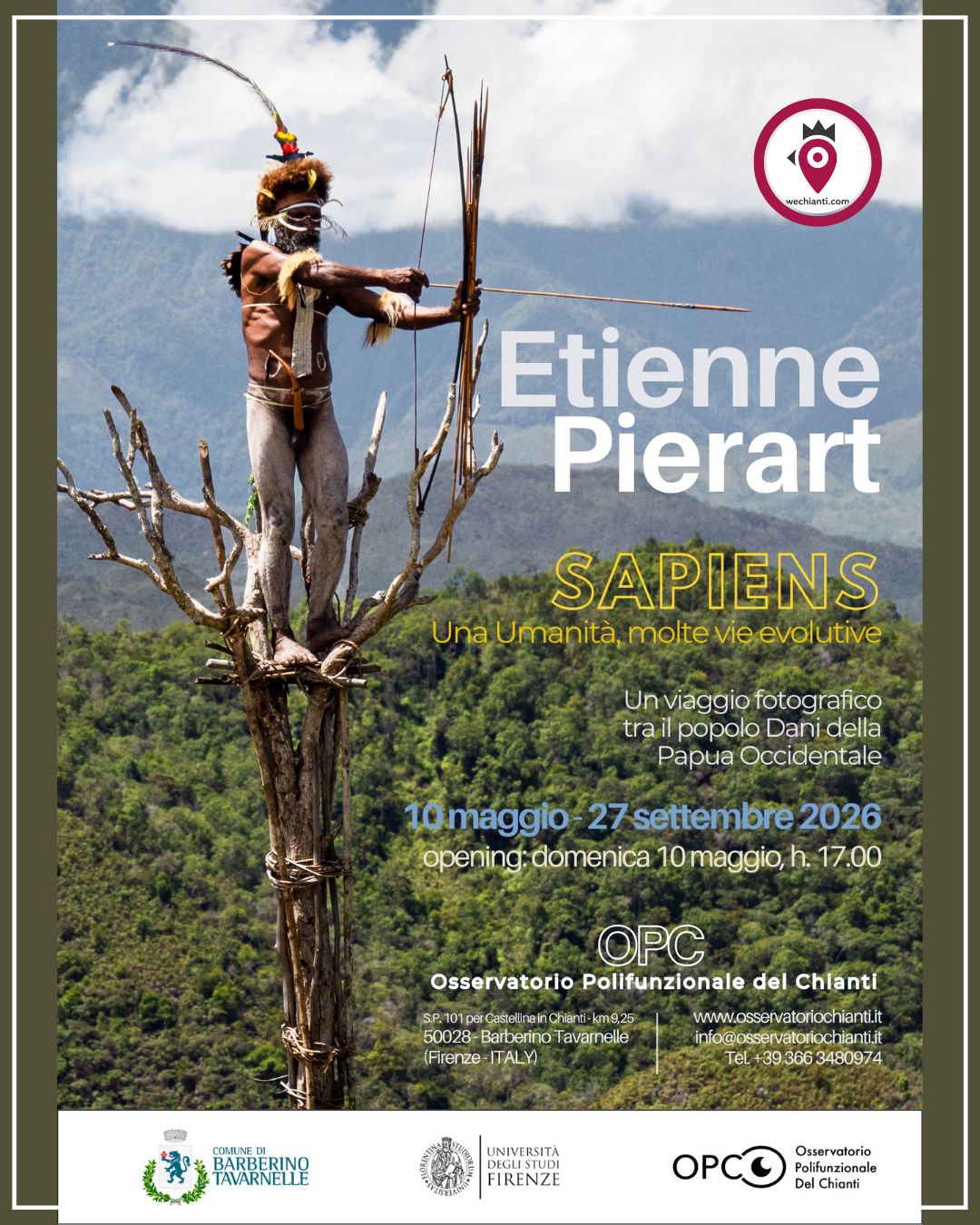 Attraverso l’obiettivo del fotoreporter belga Etienne Pierart, la mostra “Sapiens” (dal 10 maggio al 27 settembre all’OPC, Osservatorio Polifunzionale del Chianti, Barberino Tavarnelle) propone un percorso di antropologia riflessiva che trasforma l’incontro con il popolo Dani in un dispositivo critico capace di interrogare la cultura occidentale contemporanea.