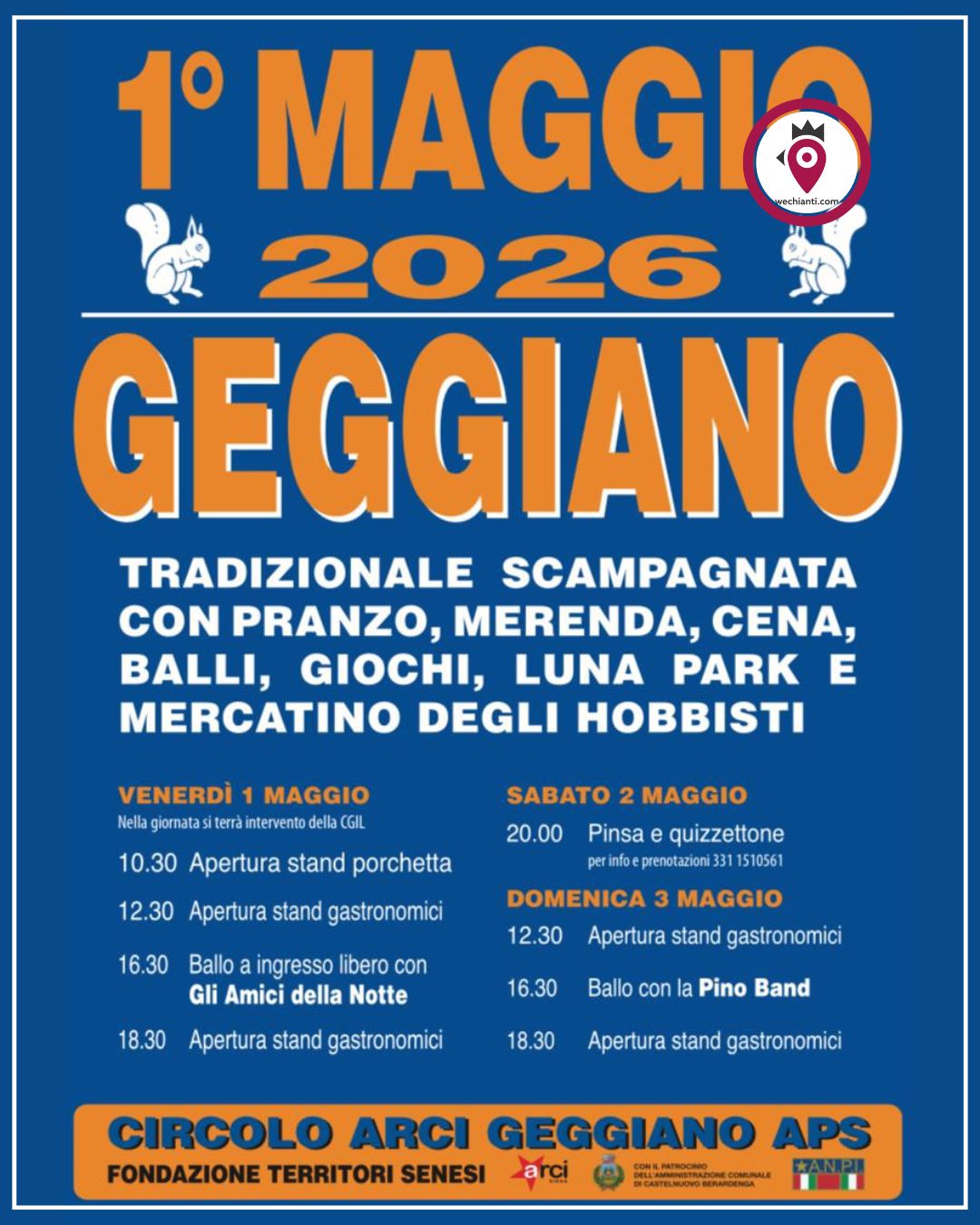 Torna la tradizionale scampagnata di Geggiano per il Primo maggio: tre giorni di festa tra convivialità, musica e appuntamenti per tutte le età.