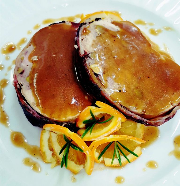 As a second dish: Rolled guinea-fowl and pork with orange sauce, a stew of potatoes, artichokes and Taggiasche olives. Dessert: Dark chocolate cake with black cherry served with orange custard cream. Price: 45 euro per person, excluding wine.